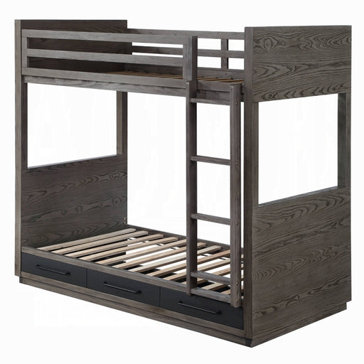 View full detailsACME Darlene Twin/Twin Bunk Bed, Rustic Gray, 77" x 43" x 90"H, 145lbs. Make bedtime fun again with the Darlene Bunk Bed. This sturdy piece is expe...