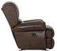 View full detailsDuncan Collection by Catnapper Furniture Walnut finish Thick and supple Italian leather Lay flat reclining Brass nailhead accents Comfort coil sea...