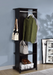 ACME Kolen Hall Tree, Espresso, 21" x 16" x 67"H, 57lbs. Features: - Rectangular Hall Tree - Storage: 2 Open Compartment (Top with Hanging Rod) - Wooden Open Frame and Mirrored Back Panel - Caster Wheels Included Materials: Wood, Veneer, Composite Wood