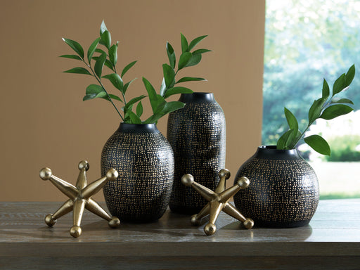 View full detailsElevate your decor with this striking accessory set. Its sleek black vases, adorned with delicate goldtone accents, are perfect for displaying your...