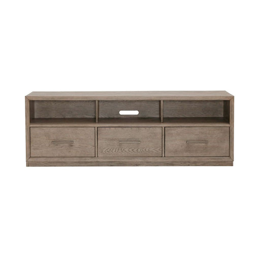 View full detailsClean-lined and contemporary—but far from stark—this TV stand is a fresh style awakening. Pairing a light finish with replicated oak grain and text...