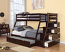 This Jason bunk bed is a twin over full bunk bed with plenty of built in storage with drawers incorporated into the stairs to upper twin bed. An a...