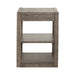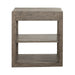Liberty Furniture Bartlett Field Chairside Table in Dusty Taupe 798-OT1021. Furnish your home, furnish your life with the Bartlett Field chairside table. Crafted with excellence using rubberwood solids with split heart white oak veneers, this chairside table features a Dusty Taupe finish. The chairside table has a reeded textured panel on the front and back. There are two fixed shelves that are great for storage or display items. Square block legs along with clean lines add for a contemporary feel. Convey energy and imagination with the Bartlett Field chairside table.
