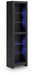 - Fireplace insert and backlit shelves features color and brightness controlled LED lighting