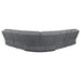 Designed for flexibility and comfort, this six-piece modular power sectional transforms your living space into the ultimate entertainment hub. Upholstered in soft charcoal performance chenille, it features three power reclining seats with wall-hugging mechanisms to maximize floor space. A lift-top console adds hidden storage, built-in power outlets with USB ports, and two stainless steel cup holders with removable inserts. Supportive pocket coil seating and a cool gel memory foam topper ensure long-lasting comfort._x005F_x000D_ Key Features: • Six-piece modular power sectional in charcoal performance chenille upholstery • Three power reclining seats with wall-hugging mechanism for space efficiency • Lift-top console with hidden storage, two cup holders, and integrated outlets • Supportive pocket coil seating ensures comfort and long-lasting durability • Includes one-inch cool gel memory foam topper for enhanced seating support • Spacious design provides seating for family gatherings or entertainment areas