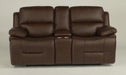 Flexsteel Latitudes Apollo Leather Power Reclining Loveseat w/Console and Power Headrests in Brown