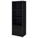 This contemporary media tower combines functionality and modern design in a sleek black finish. Built from durable engineered wood with a scratch-resistant laminate veneer, it features three open shelves for organizing media devices, books, or decor. A bottom cabinet offers concealed storage to keep clutter at bay. Its tall, clean-lined silhouette provides vertical storage, perfect for maximizing space in living rooms, home offices, or entertainment areas.